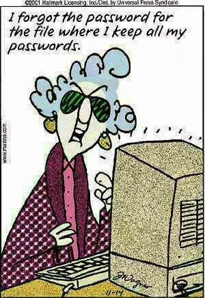 Você tem que memorizar todos os códigos de usuário que você escolheu ou não, e todas senhas e "PINs" de cartões que substituíram as assinaturas, além de códigos extras de acesso pelo telefone, porque se você anotar e for roubado, ba-bau. Se você usar a mesma senha para tudo e descobrirem, melhor suicidar-se. Agora, além de código de usuário e senha, você ainda tem que responder a várias perguntas que supostamente só você sabe as respostas, perguntas íntimas estas que você escolheu dentre uma série oferecida, como nome do meio da sua mãe, nome da sua escola primária, cor do seu primeiro carro, nome da sua banda preferida quando era adolescente, primeiro cachorro, primeira marca de cueca, quantas vezes vai ao toalete por dia, quantas doencas venéreas você pegou entre os 14 e 30 anos, o que você come de manhã, nome da cachorra da sua secretária... imagine os velhinhos tendo que arcar com estas atividades? (Nem tudo citado aqui é real, obviamente. Faz parte do sarcasmo, para quem não notou)